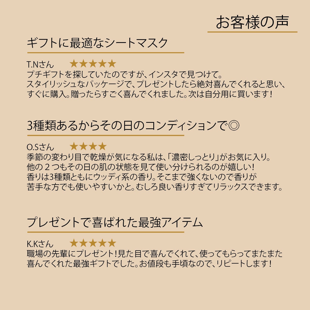 シートマスクサイズ:21cm x 21cm (最大幅) *3種共通