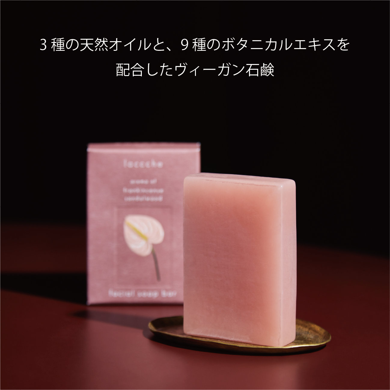 lacccheの石鹸は時間をかけて丁寧に作っています。天然の植物性油脂を主成分とし、熱を加えすぎずにじっくりと熟成させることで、洗浄成分だけでなく、植物由来の美容成分を石鹸の中に閉じ込めています。